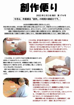 今回の創作便りは 作業療法「創作」の時間のご紹介です。
