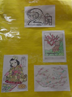 塗り絵作品も、デイルームに掲示しております!