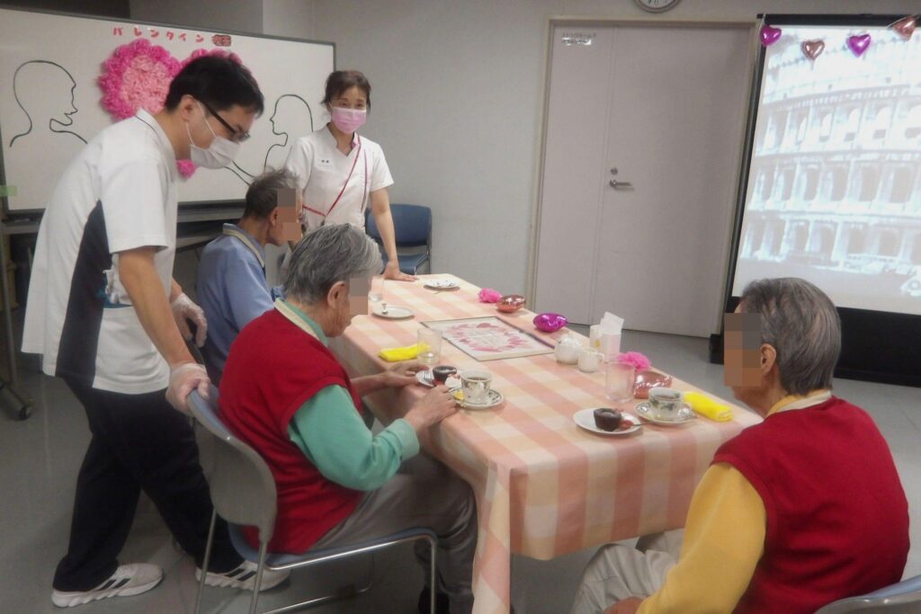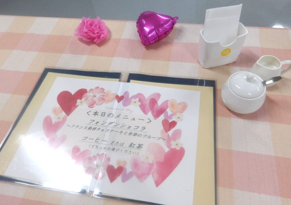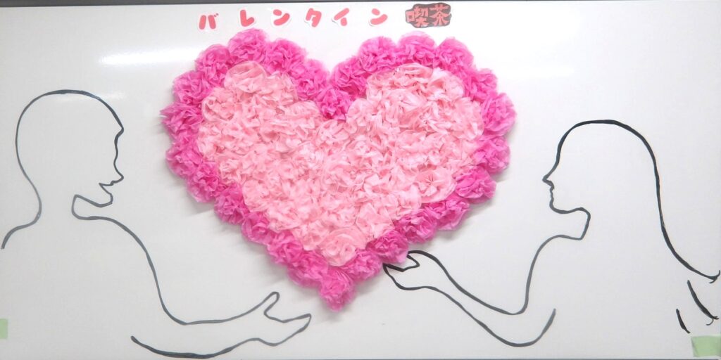 雰囲気作りのためにバレンタインをイメージした飾り付けを行って