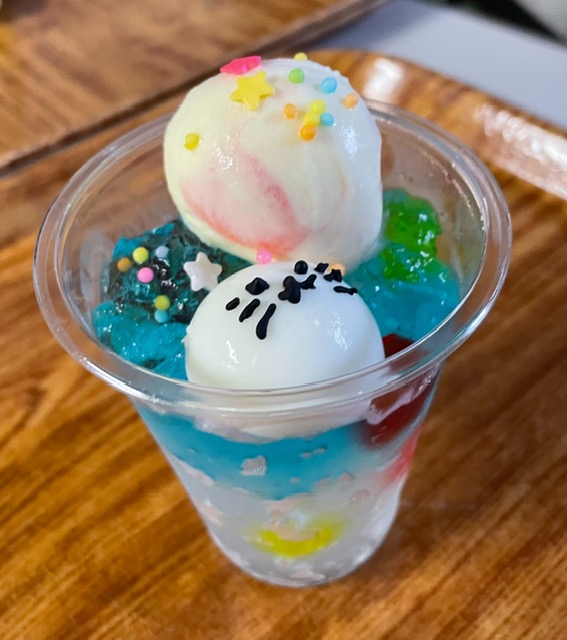 アイスとアザラシの顔を書いた寒天が乗りました☆
