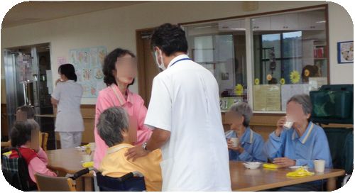 顔見知りの患者様からの歓迎を受け、会場は