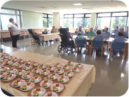 栄養科の職員が、プチ・ケーキを配ってまわります。