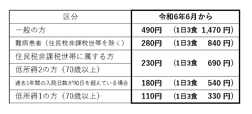 令和6年6月1日より、入院時の食事にかかる患者負担額が変わります。