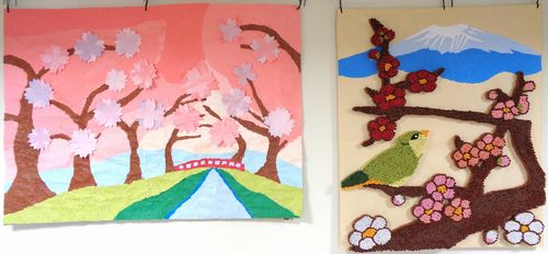 春に制作された桜のトンネルの貼り絵作品の