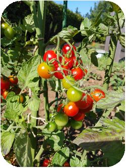 庭園にはトマトのほか、ブルーベリーなどの果実の樹木もあり