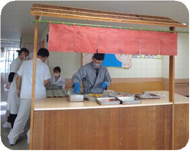屋台を組んで、(株)富士産業の職人さんが デイルームで握ります。