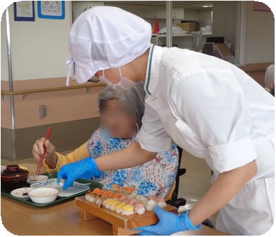 本日、各病棟 年に一度の「お寿司バイキング」が