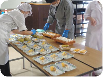 (株)富士産業の職人さんと、栄養科の職員の方々が
