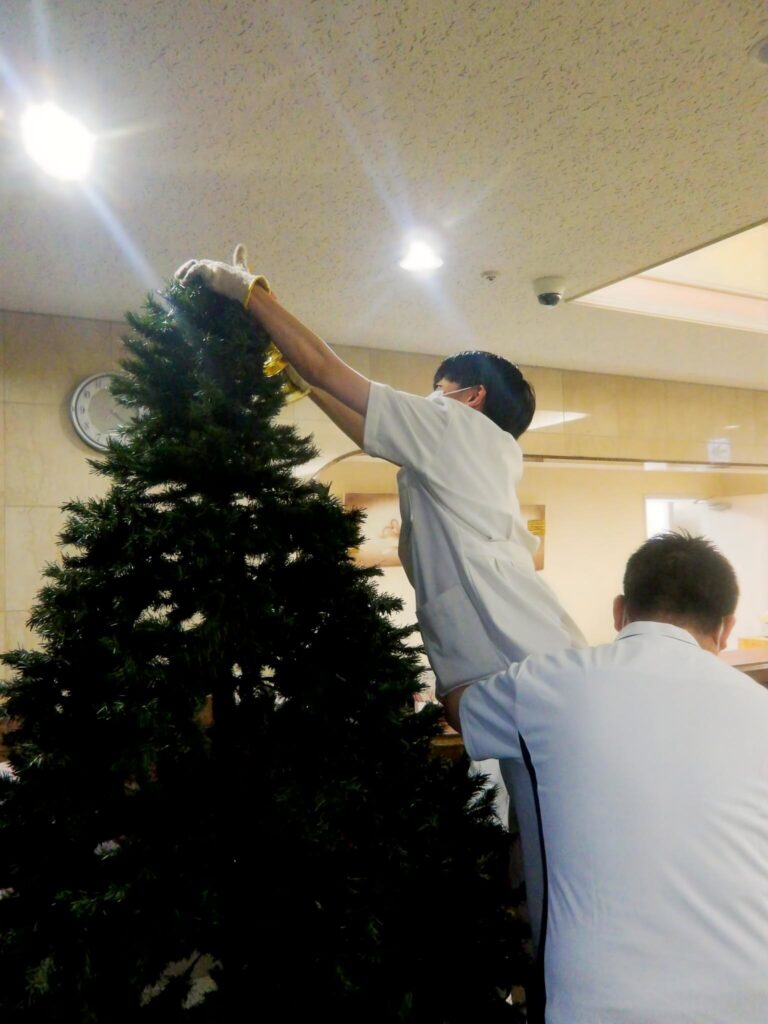 今年も1Fロビーに大きなクリスマスツリーを飾りました。